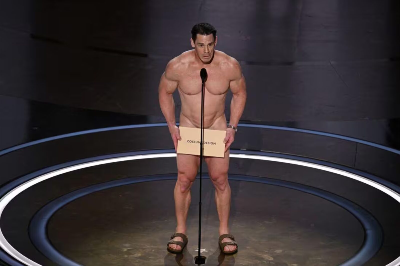 Ao subir ao palco para apresentar um prêmio, Cena decidiu ousar de uma maneira peculiar. Ignorando os limites do convencional, ele apareceu “pelado”, por assim dizer, envolto apenas pelo sagrado envelope contendo o nome do vencedor. Sua audaciosa jogada arrancou risadas e deixou a plateia atônita, provando mais uma vez seu talento para surpreender e divertir.
